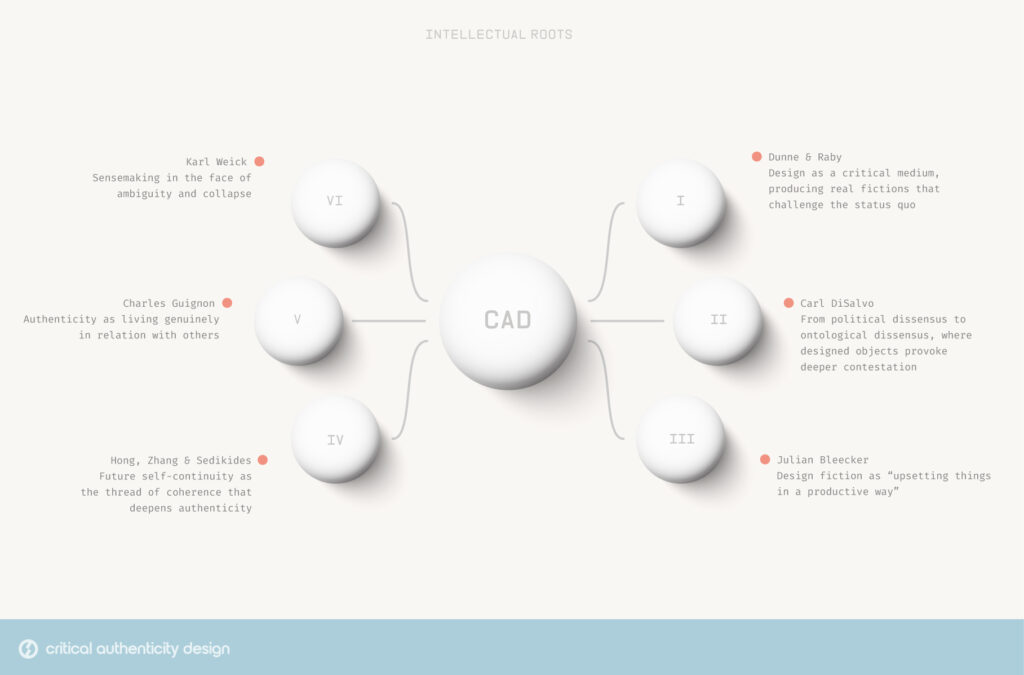 Critical Authenticity Design (CAD) is a research direction and design attitude. It begins from a simple but unsettling claim: authenticity is not secure. It is always contested and always shaped by the systems that surround it. CAD treats authenticity as a question to be asked — repeatedly — through design.