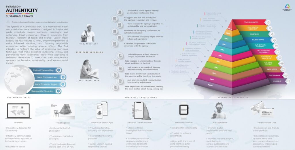 The Pyramid of Authenticity also opens speculative futures. By linking cultural stewardship, local empowerment, and responsible education, the model suggests how authenticity might inform more sustainable travel practices. Potential applications include digital platforms, experiential apps, or even AR experiences.